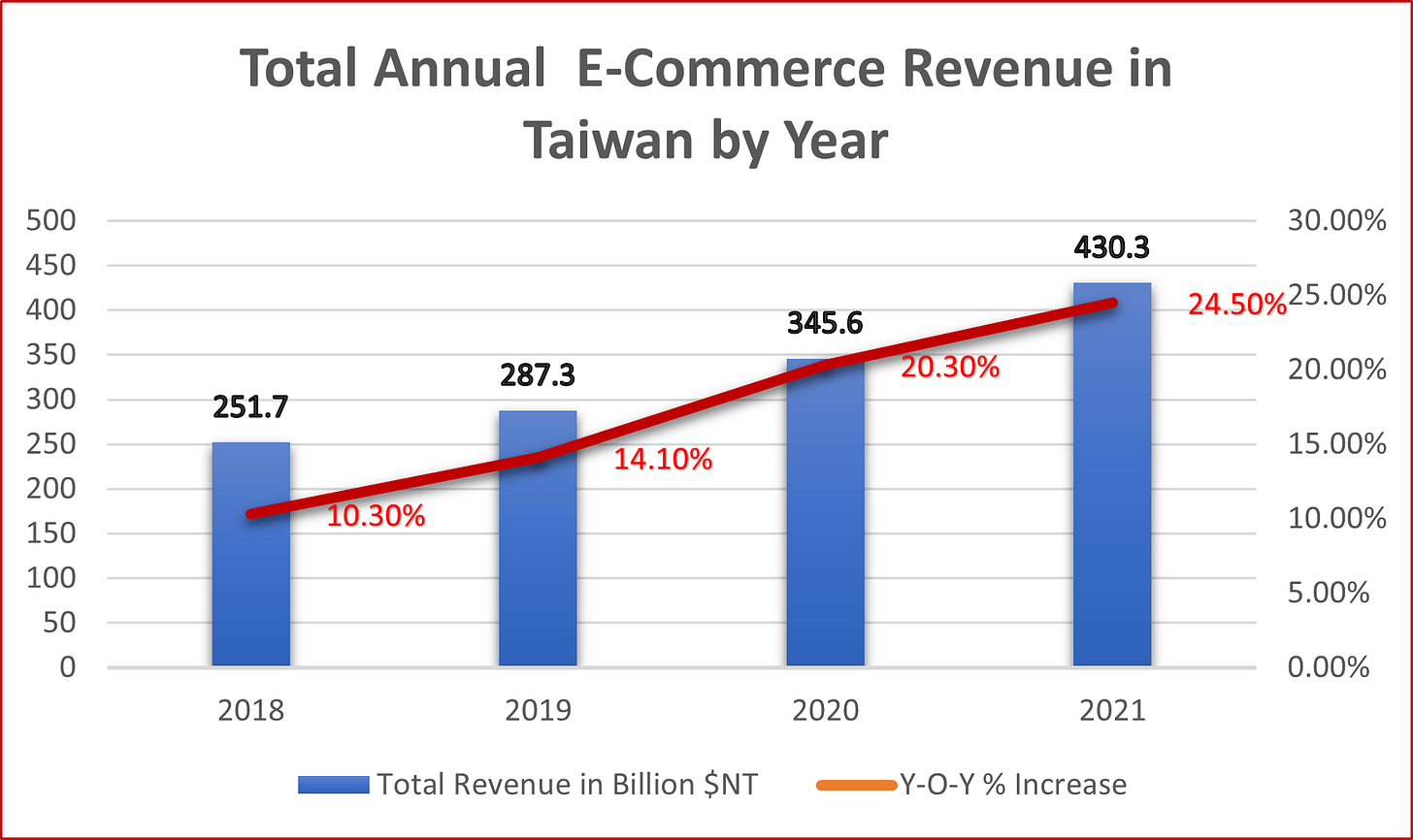 As in most of the world, COVID sent e-commerce penetration in Taiwan to the stratosphere. Taiwan was an early e-commerce adopter, but most of the local players had hardly changed for a decade. A major COVID outbreak in May and lockdown style restrictions for close to four months forced the industry to innovate, resulting in bumper revenues.